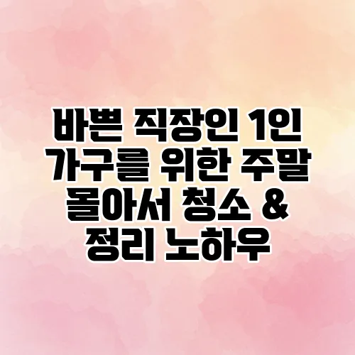 '1인 가구 정리', '직장인 청소 팁', 그리고 '주말 몰아서 하는 청소''는 모두 여러분의 생활 패턴에 딱 맞는 전략들이니 오늘부터 조금씩 실천해보세요. 작은 변화가 큰 행복으로 돌아오는 순간들이 기다리고 있습니다!