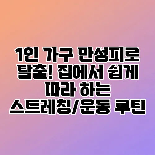 바쁜 일상과 혼자 사는 생활이 길어질수록 자연스럽게 피로감이 쌓이기 마련입니다. 특히 1인 가구 만성피로는 단순한 피로를 넘어 삶의 활력을 떨어뜨리고, 일상생활의 질을 낮추는 주범이 될 수 있습니다. 하지만 걱정하지 마세요! 오늘은 집에서 쉽게 따라 할 수 있는 집 스트레칭 운동과 운동 루틴을 소개하며, 만성피로 탈출 운동의 길목에 함께 서보도록 하겠습니다. 이 글을 끝까지 읽으면, 여러분도 집에서 간단하게 시작하는 홈 헬스 운동으로 새로운 활력을 찾을 수 있을 거예요. 이제부터는 ‘힘든 하루를 보내고 있지만, 조금만 움직여볼까?’라는 마음가짐으로 시작해봅시다.